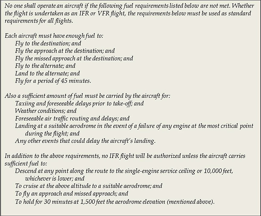 Afin de déterminer à quel moment le C-GJSU ne pouvait plus atteindre l'aéroport de destination d'origine, les enquêteurs ont calculé la quantité de carburant à bord à divers moments clés ou événements clés du vol ainsi que le temps de vol nécessaire pour atteindre CYHU à partir de chacun de ces moments à une vitesse sol moyenne de 180 nœuds et sans allocation pour l'exécution d'un circuit avant l'atterrissage (tableau 1).