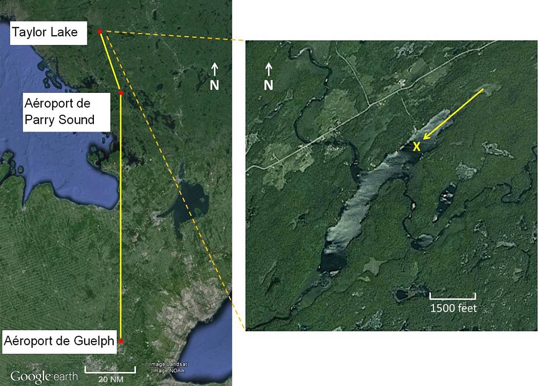 Le jour de l’accident, le pilote a décollé de l’aéroport de Guelph (Ontario) à destination de l’aéroport de Parry Sound (Ontario), où il a effectué une série de posés-décollés sur la piste avant de poursuivre sa route vers le lac Taylor (figure 1).
