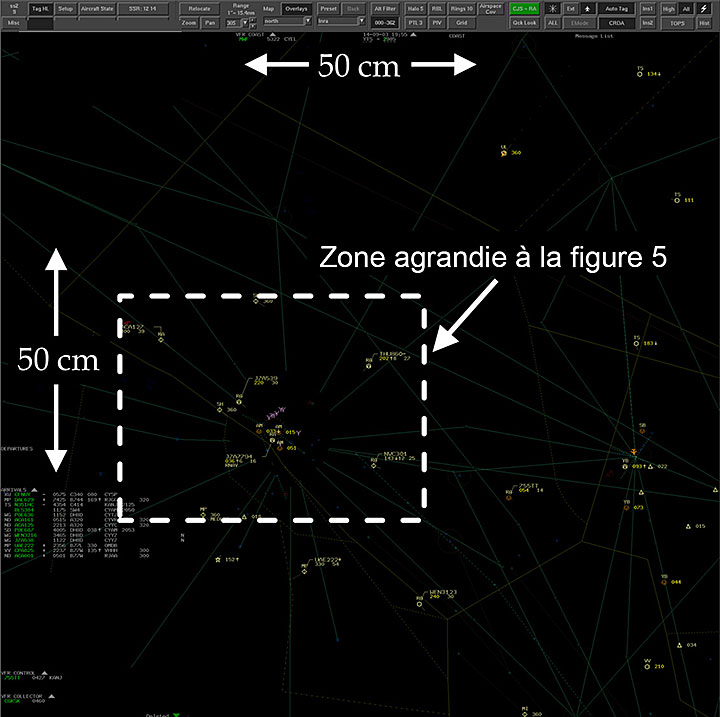 Les contrôleurs du CZYZ visualisent les données radar sur la circulation aérienne au moyen d'un écran d'affichage (CSit) de situation CAATS (Système canadien automatisé de contrôle de la circulation aérienne). Le CSit est un écran relativement grand, soit d'environ 50 cm sur 50 cm.