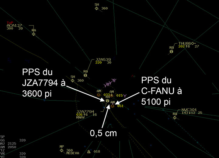 Au moment où les aéronefs sont passés l'un à côté de l'autre, leurs PPS se sont chevauchés.