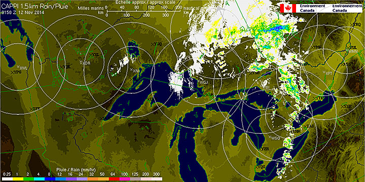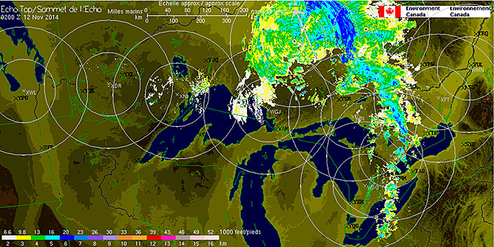 Lors de l'accident à l'étude, l'ATC de CZYZ savait qu'un système météorologique s'approchait de l'ouest. Toutefois, puisqu'il n'y a pas de station d'observation météorologique à proximité, les contrôleurs ne disposaient pas de données précises sur la base des nuages, les vents et les précipitations.