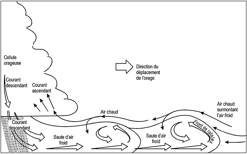 - Un cisaillement latéral du vent généré par une rafale descendante au nord de la piste a subitement fait augmenter la dérive de l'avion vers la gauche au moment de l'arrondi.