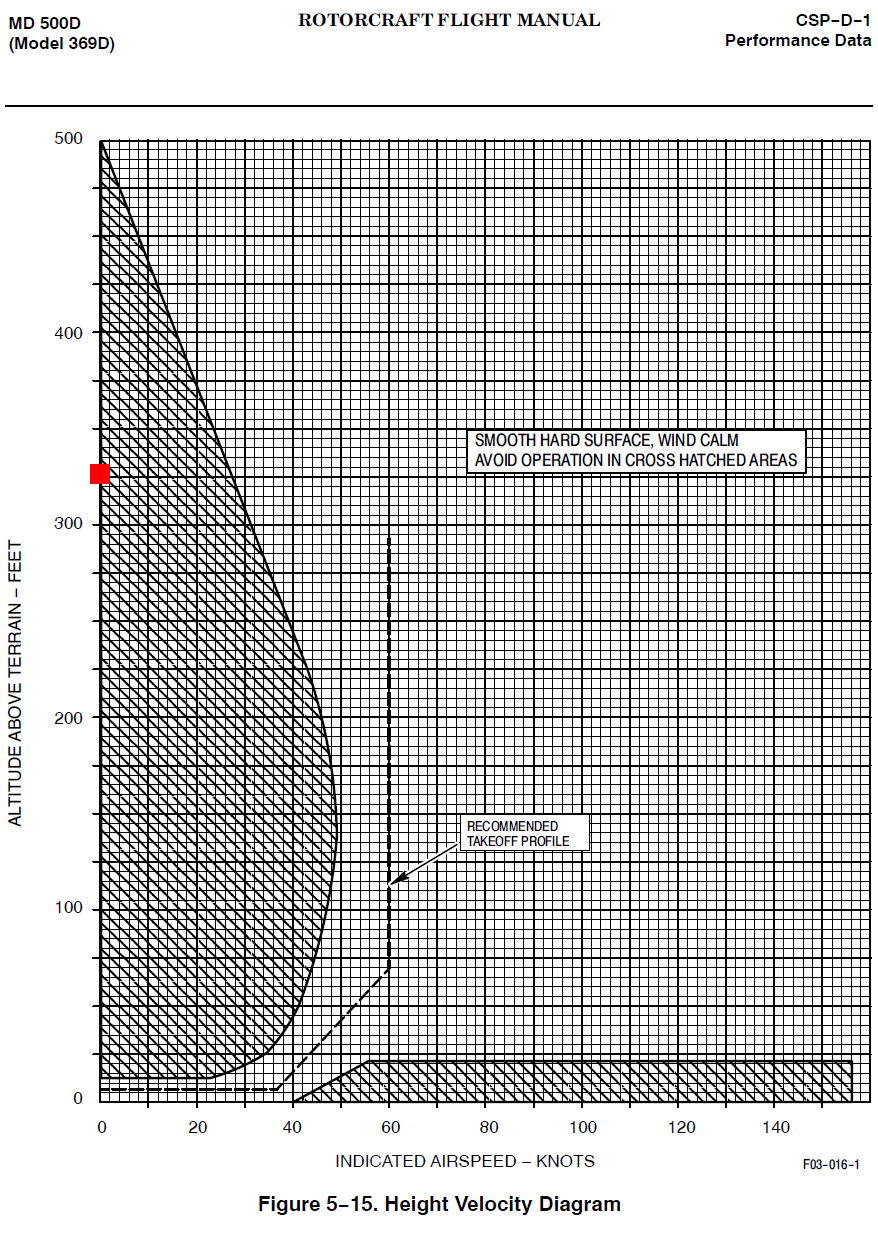 Étant donné que l'exploitation d'un hélicoptère comprend toujours des temps de vol stationnaire, le manuel de vol de giravion comprend un graphique hauteur / vitesse qui indique les combinaisons de vitesse anémométrique et d'altitude à éviter. Comme les temps de vol stationnaire sont inévitables, les combinaisons de vitesse anémométrique et d'altitude figurent dans la section sur les données de performance du manuel de vol de giravion plutôt que dans la section sur les limites.