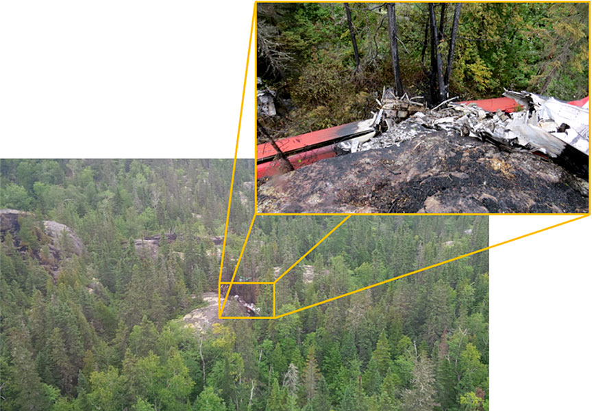 À la suite de l'impact avec l'affleurement rocheux, l'appareil a été détruit, il s'est enflammé, et la cabine a été consumée par l'incendie.