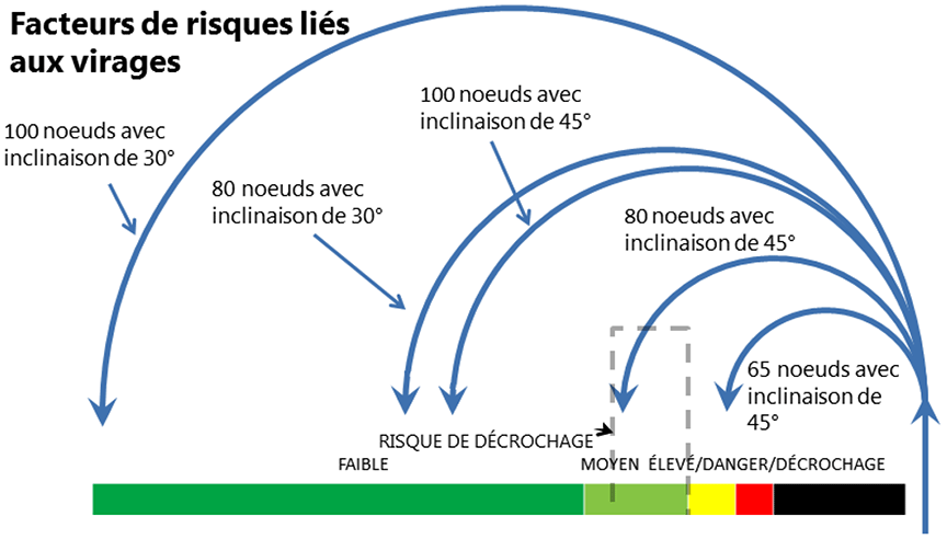- Si les pilotes ne suivent pas un entraînement sur le décrochage qui démontre le comportement réel de l'avion en virage à grande inclinaison avec de la puissance, il y a un risque accru de perte de maîtrise.