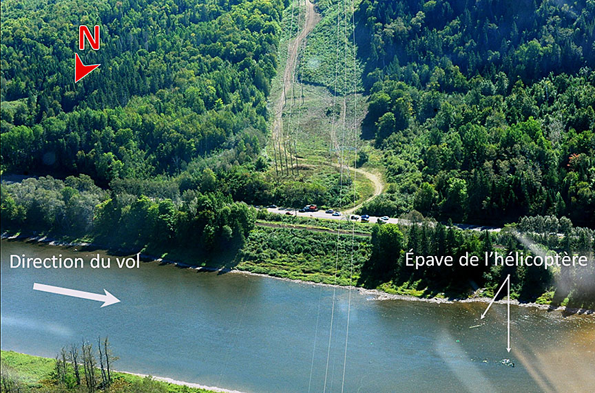 Au cours de l'événement à l'étude, lorsque l'hélicoptère volait à basse altitude le long de la rivière Restigouche, les pylônes des lignes de transport d'électricité qui se trouvaient de chaque côté du cours d'eau étaient, du point de vue du pilote, en grande partie cachés par de grands arbres. Une emprise déboisée se trouvait en dessous des lignes de transport d'électricité, mais elle ne se voyait pas à basse altitude.