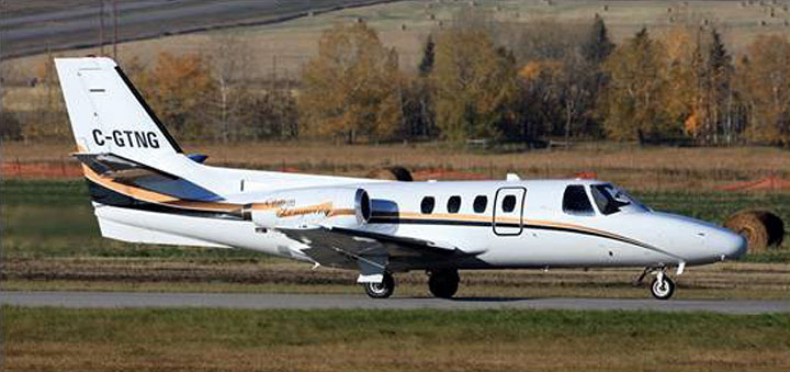 Le C500 (figure 4) est un aéronef d'affaires à cabine pressurisée et à turboréacteur à double flux. Son altitude d'exploitation maximale est de 35 000 pieds asl et il est muni d'un train d'atterrissage escamotable. L'aéronef à l'étude était approuvé pour les vols de jour et de nuit selon les règles de vol à vue (VFR) et aux instruments (IFR), et il était certifié pour le vol dans des conditions givrantes connues. Le C-GTNG était également muni d'un pilote automatique (Bendix FSG-70) et d'un indicateur d'angle d'attaque.