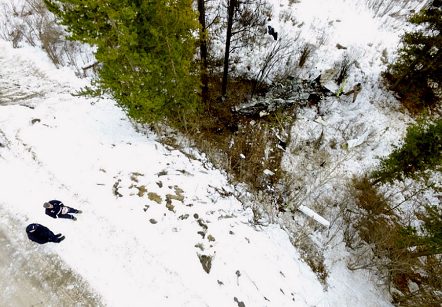 À 17 h 50, le second aéronef de la Mount Royal University a repéré le C-GRDV au sol; il était lourdement endommagé et en proie aux flammes. Un hélicoptère-ambulance est arrivé sur les lieux de l'accident à 18 h 50. À 19 h, la Gendarmerie royale du Canada et le service des incendies de Ghost River se sont rendus sur les lieux de l'accident et ont confirmé qu'il n'y avait aucun survivant.
