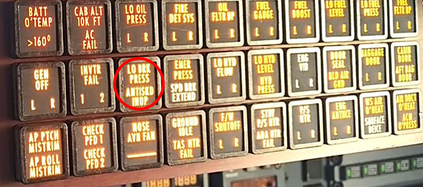 L'examen sur place a révélé que le voyant LO BRK PRESS du panneau annonciateur ne s'allumait pas lorsque la pression de frein était inférieure à 750 lb/po² (figure 5).