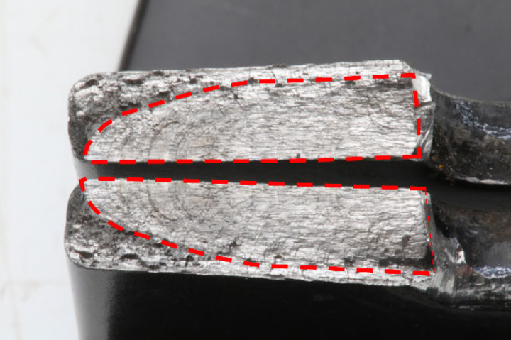 - Une ligne de rupture nette et droite traversait le centre du trou de boulon sur le support. Le support ne montrait aucun signe de déformation plastique (figure 4).