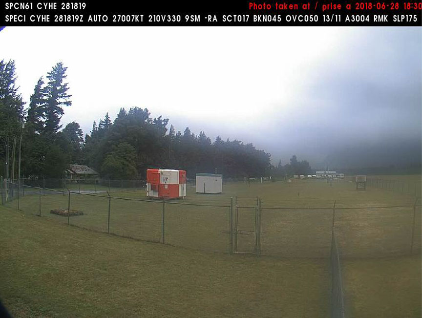 Les données du système automatisé d'observations météorologiques de CYHE pour 11 h 19, soit environ 16 minutes avant l'événement à l'étude, étaient les suivantes :