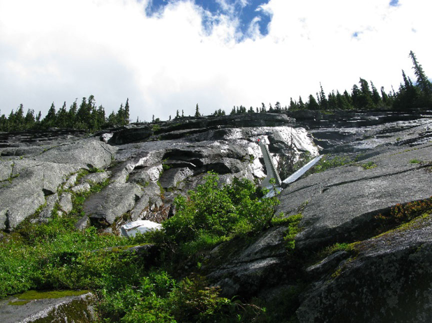 L'aéronef a percuté le versant nord-est du pic ZupjokNote de bas de page 7 à une altitude de 5800 pieds. L'aéronef a ensuite glissé sur la pente de granite pour s'immobiliser à une altitude de 5200 pieds (figure 4), où il a été consumé par un incendie.
