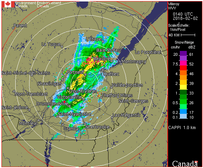 Annexe C – Capture d’écran du radar météorologique de Villeroy à 20 h 40 le 1er février 2018