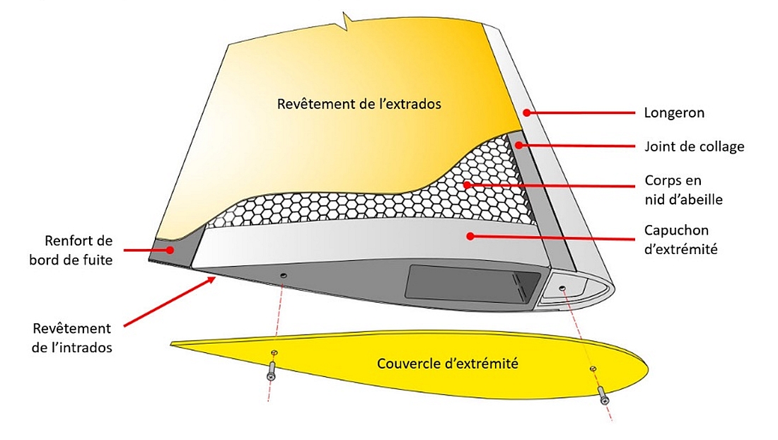 Tous les cas connus de décollement au niveau des joints de collage touchaient uniquement le bout de la pale et ont entraîné, dans les cas les plus graves, une séparation soudaine par pelage du revêtement de la pale en vol (figure 3).