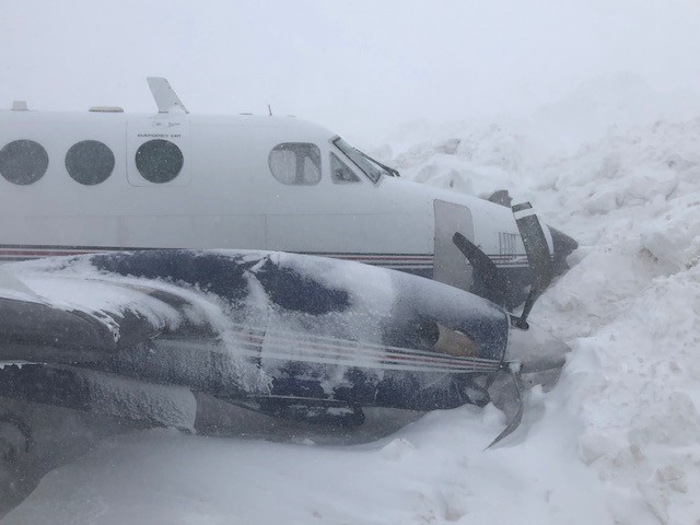 L’aéronef a été lourdement endommagé, mais le fret est resté en place. La radiobalise de repérage d’urgence (ELT) de 406 MHz ne s’est pas activée et il n’y a pas eu d’incendie. Les premiers intervenants ont éprouvé des difficultés à se rendre du hameau jusqu’à l’aéroport en raison de la poudrerie.