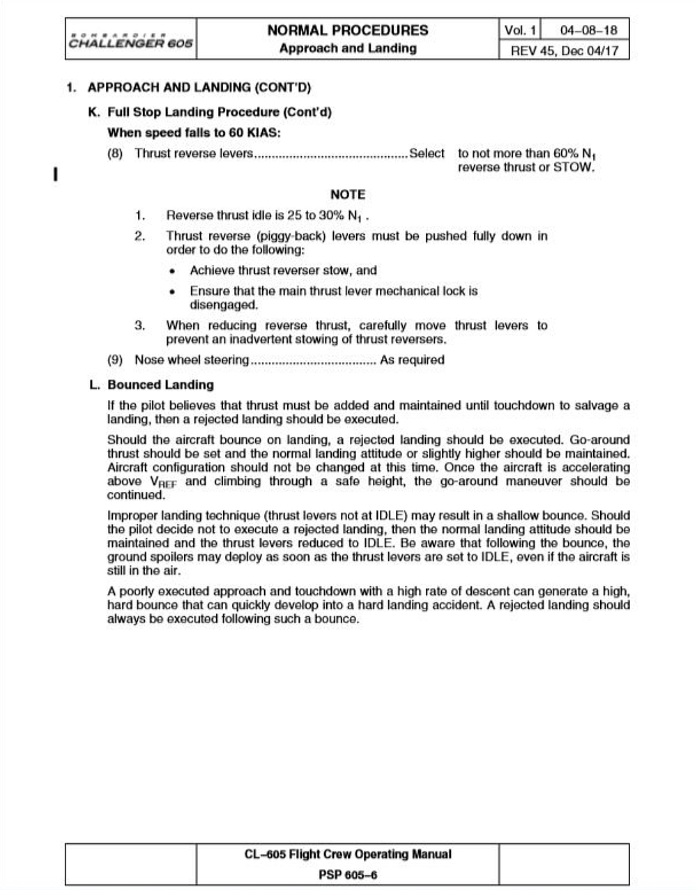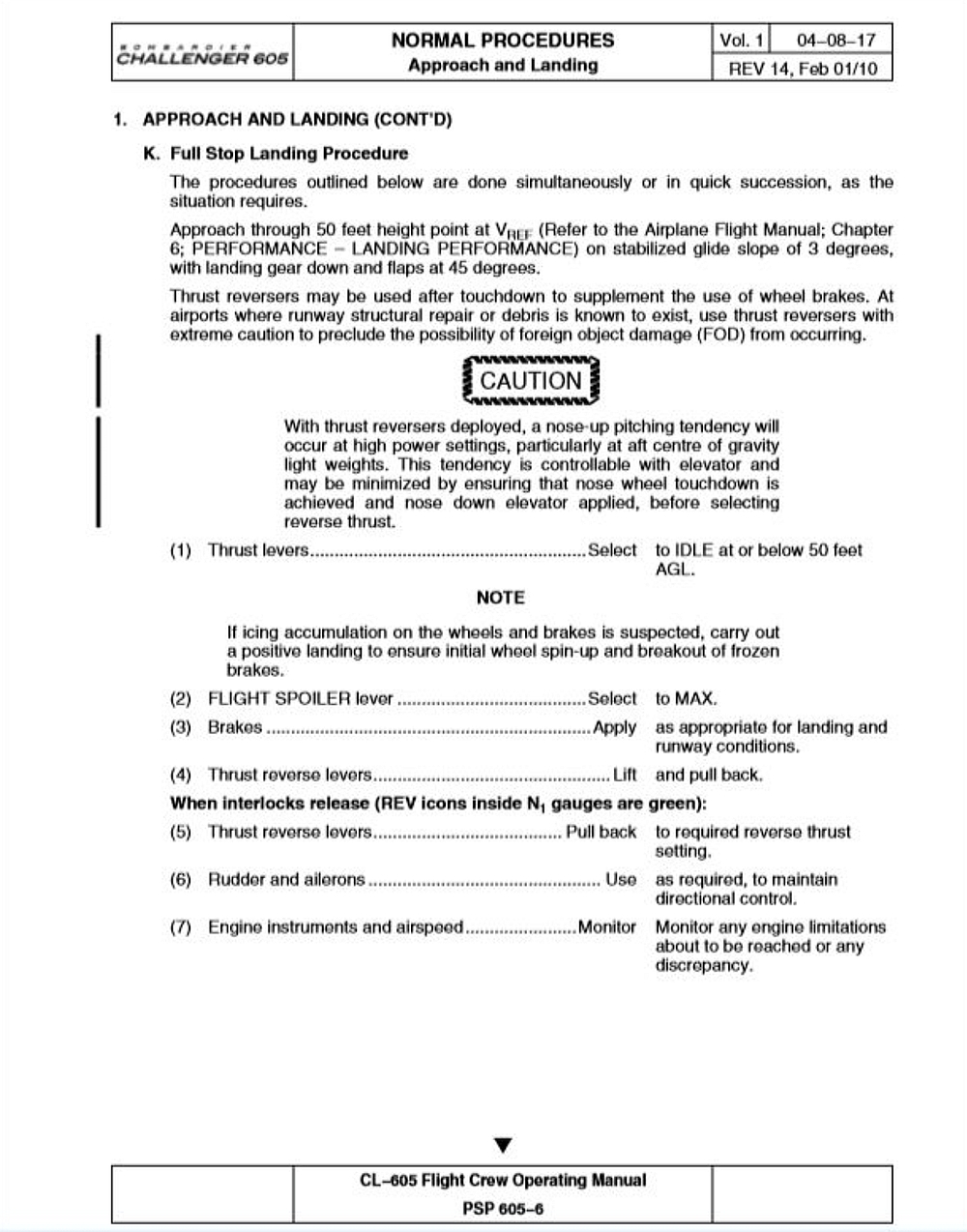 Annexe D – Procédure d’atterrissage à arrêt complet du Bombardier Challenger 605