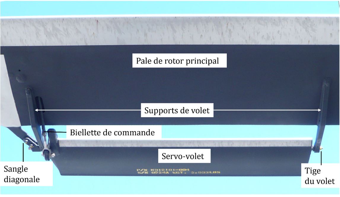 Les servo-volets de pale de rotor principal sont inclinés par les commandes du pilote et produisent une force aérodynamique qui confère un couple de rotation (torsion) à la pale de rotor et crée l’angle d’attaque requis pour la portance. En cas de défaillance d’un volet, la pale touchée produira une portance considérablement réduite.