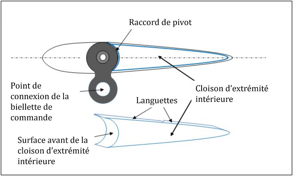 - Les servo-volets des pales 0517B et 0520B présentaient une épaisseur de joint de collage incontrôlée en raison du déplacement du canevas.