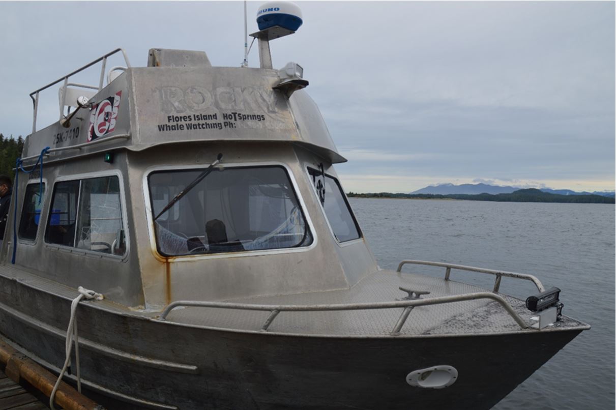 La route entre Tofino et Ahousaht est d’environ 14 milles marins (NM) et prend approximativement 34 minutes. Les bateaux-taxis naviguent régulièrement à des vitesses d’environ 25 nœuds sur cette route, et maintiennent cette vitesse jusqu’à ce qu’ils soient à proximité du quai.