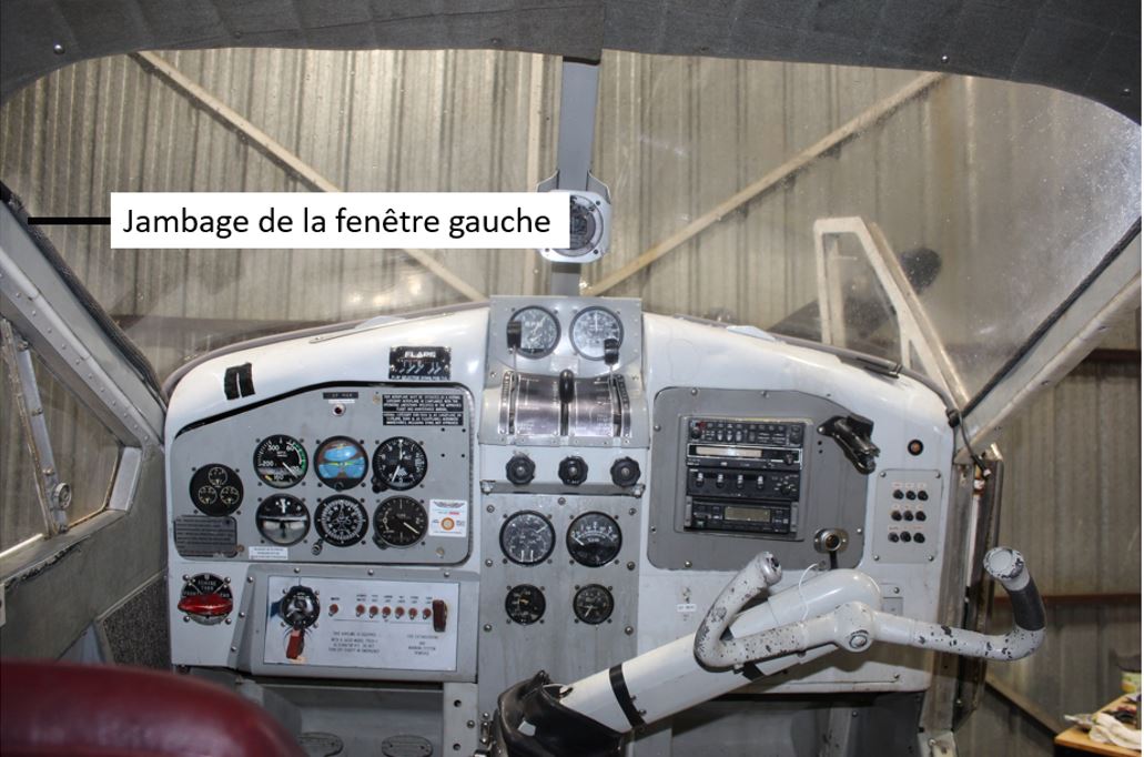 Le fuselage de l’aéronef DHC-2 présente une structure entre les 2 fenêtres gauche les plus à l’avant (figure 8). Les pilotes dont le siège est réglé pour qu’il soit le plus reculé possible, comme c’était le cas dans l’événement à l’étude, s’assoient à côté de cette structure, ce qui peut limiter la vue à gauche de l’aéronef.