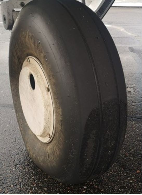 L’aéronef n’a pas été endommagé, cependant les pneus du train d’atterrissage principal présentaient des signes de réversion du caoutchouc (figures 2 et 3).