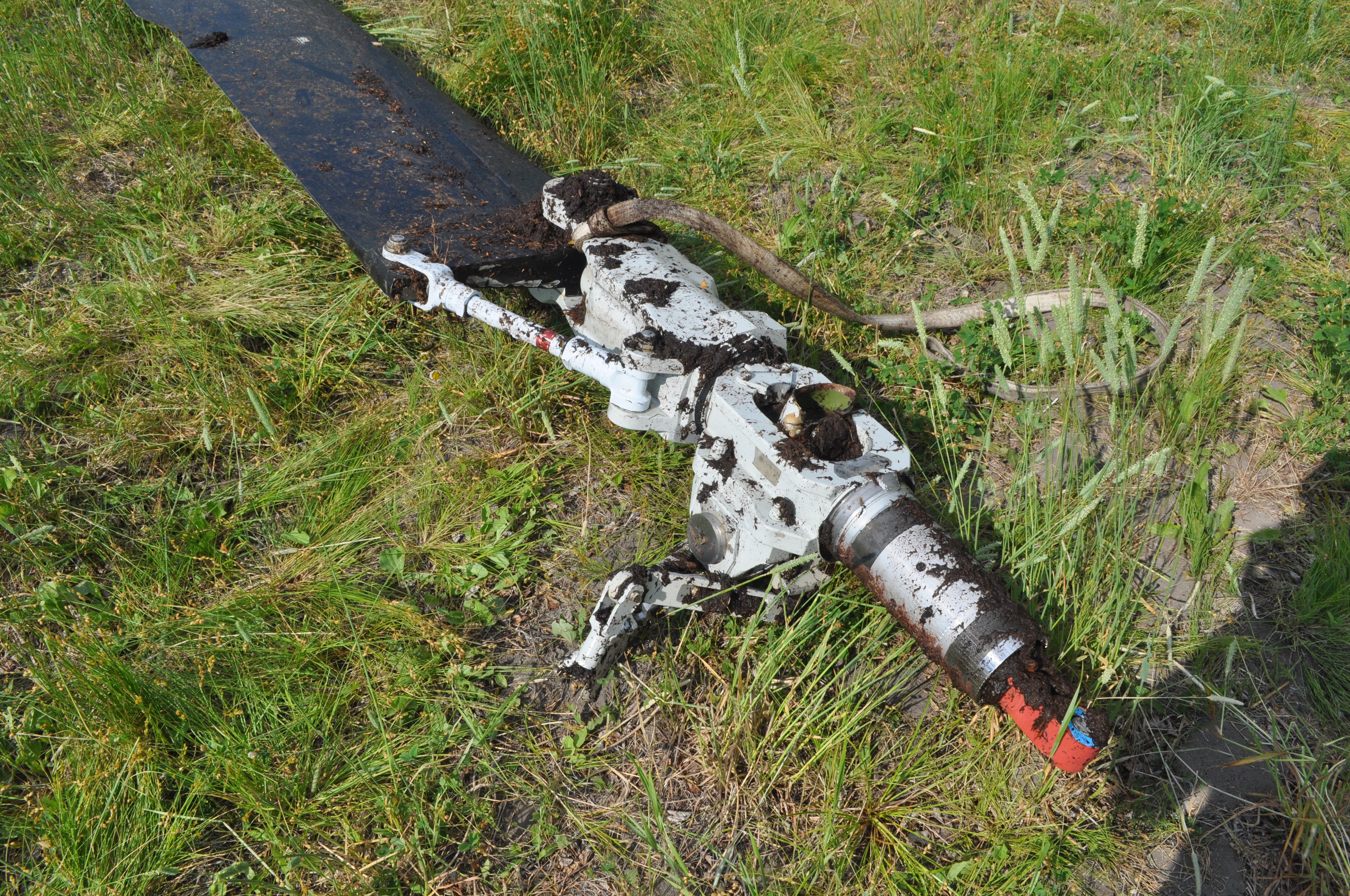 La première pale du rotor principal à se détacher de l’hélicoptère (pale A, figure 3) s’est immobilisée dans une zone de buissons calcinés à environ 460 pieds au sud-ouest du lieu où se trouvait la majeure partie de l’épave. La pointe de cette pale était enfouie dans la fondrière à environ 10 pieds de profondeur, la poignée de la pale pointant vers le haut.