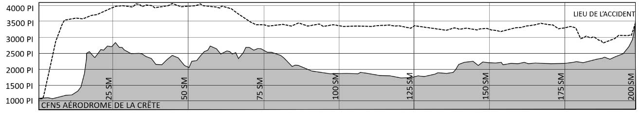 L’aéronef a décollé à 9 h dans des conditions météorologiques de vol à vue, pour d’abord monter à 3500 pieds ASL en direction sud (figures 1 et 2). En route vers CYZH, l’aéronef a atteint une altitude de 4000 pieds ASL avant de descendre, probablement à cause des plafonds de nuages. Lorsque l’aéronef se trouvait à 14 milles marins (NM) au nord de CYZH, le pilote a modifié sa destination de CYZH à CYLL dans l’appareil GPS (système de positionnement mondial). La trajectoire de l’aéronef a alors viré vers l’est, en direction de CYLL et d’un relief ascendant. À ce moment-là, l’aéronef évoluait à 3000 pieds ASL ou à 500 pieds au-dessus du relief.