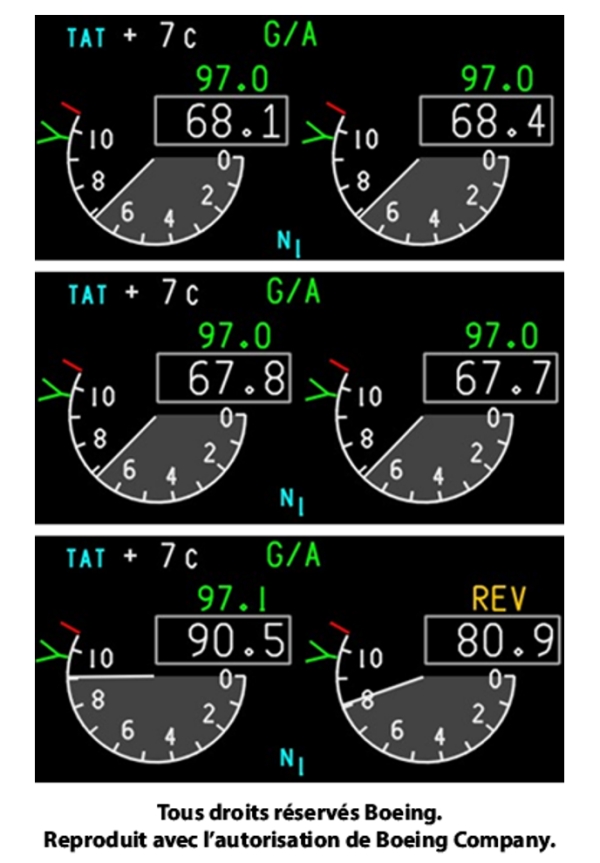 - les deux manettes de poussée sont ramenées à la position IDLE;