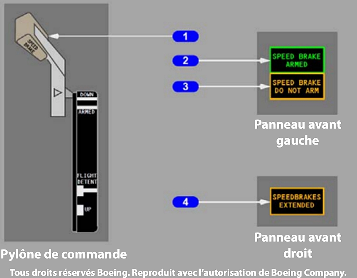 Remarque : Après un atterrissage tous volets rentrés (sans volets), la manette SPEED BRAKE ne se déplacera pas au-delà du cran FLIGHT DETENT et les déporteurs ne se déploieront pas complètement. […]