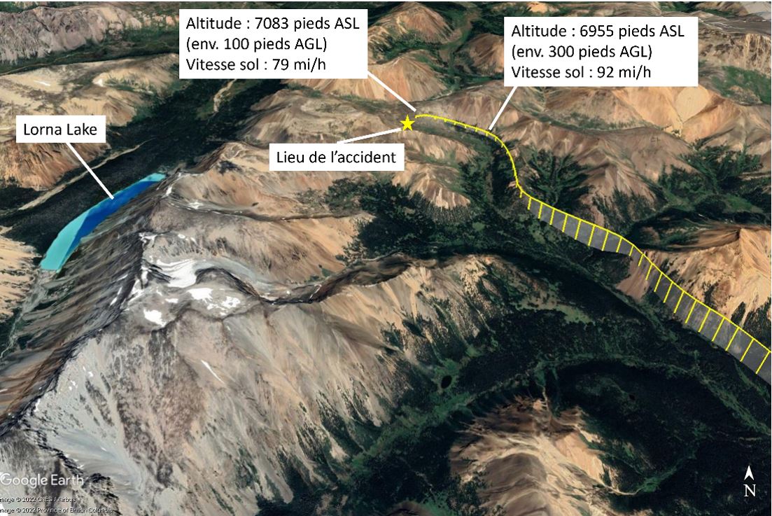 Le 17 juillet 2022, à 10 h 21, heure avancée du Pacifique, l’aéronef de Havilland DHC-2 MK. I (Beaver) monté sur flotteurs et exploité par Tyax Air Service Limited (immatriculation C-GIYV, numéro de série 1488) a quitté le lac Tyaughton (Colombie-Britannique) (Colombie-Britannique) pour effectuer un vol selon les règles de vol à vue à destination du lac Lorna (Colombie-Britannique), avec 1 pilote et 5 passagers à son bord. Vers 10 h 40, pendant le vol en croisière, la pilote a tenté de faire demi-tour dans une vallée, et l’aéronef est ensuite entré en collision avec le relief. La pilote et 2 passagers ont été grièvement blessés et 3 passagers ont été légèrement blessés. L’aéronef a été lourdement endommagé. La radiobalise de repérage d’urgence de 406 MHz s’est activée, mais les opérations de recherche et sauvetage ont été retardées d’environ 3 heures en raison de la présence de plafonds bas à proximité du lieu de l’accident.