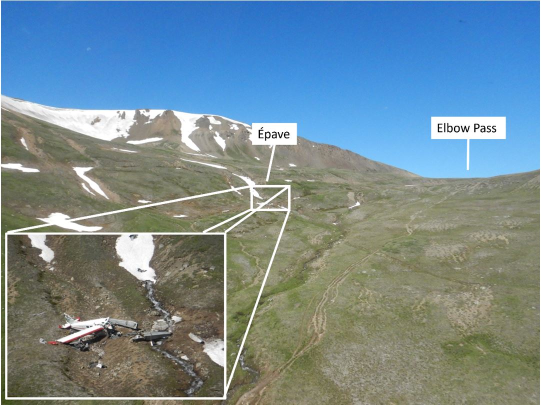 En entrant dans la vallée menant à Elbow Pass, l’aéronef circulait dans des conditions VFR sous une couche de nuages et dans des précipitations. Des photos prises le jour de l’événement montrent des précipitations sur le pare-brise de l’aéronef.