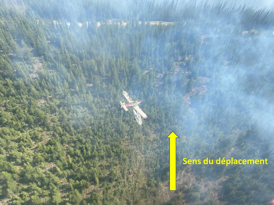 L’aéronef s’est immobilisé à environ 200 m de l’incendie incontrôlé de Connell Ridge. À cet endroit-là, l’aéronef tout entier risquait de prendre feu. Cependant, la direction changeante des vents et des opérations de lutte contre l’incendie continues dans le secteur ont permis de récupérer l’aéronef quelques jours plus tard.