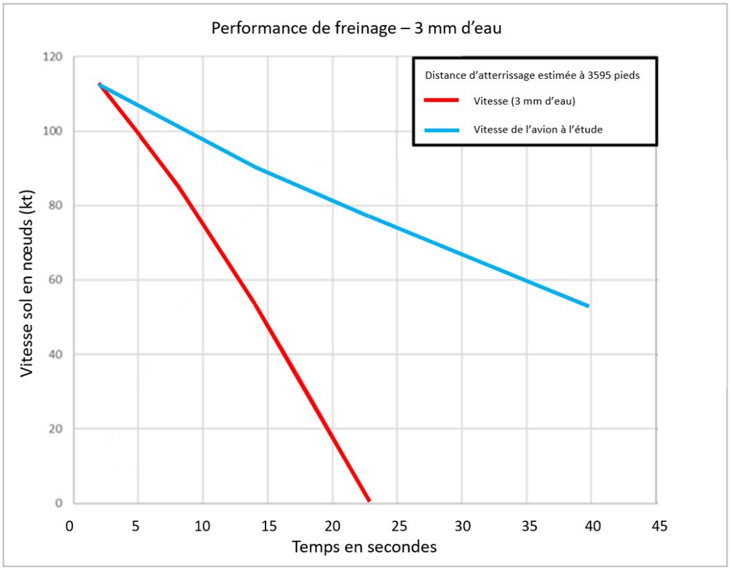 Dans ces conditions, l’adhérence des pneus est négligeable et, dans certains cas, les roues peuvent même s’arrêter complètement de tourner; la capacité de freinage des pneus est nulle et ceux-ci ne permettent plus le contrôle directionnel de l’aéronef. Il est difficile d’évaluer précisément l’augmentation de la distance de freinage qui en résulte, mais selon les estimations, elle peut aller jusqu’à 700 %Transports Canada, TP 14371, Manuel d’information aéronautique de Transports Canada (AIM de TC), AIR – Discipline aéronautique (7 octobre 2021), section 1.6.6 : Pistes mouillées.,Ce phénomène correspond à l’aquaplanage dynamique..