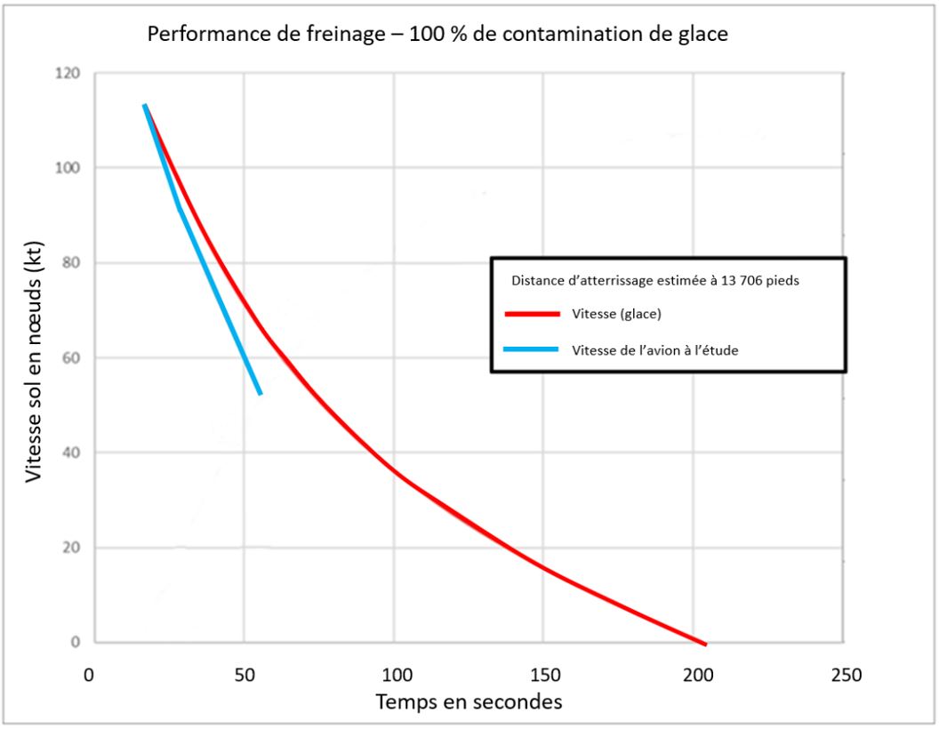 - D’après les témoignages recueillis, les conditions météorologiques au moment de l’événement et l’analyse conduite par Environnement et Changement climatique Canada, l’enquête a conclu qu’il n’y avait pas de glace sur la surface de la piste au moment de l’événement.