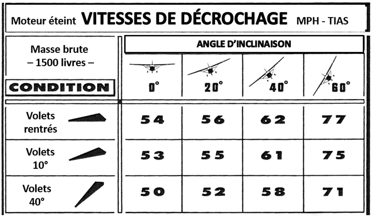 Selon le manuel du propriétaire, quand le moteur est éteint et que les volets sont à 10°, la vitesse de décrochage de l’aéronef est de 53 mi/hNote de bas de page 2. Lorsque les volets sont rentrés (position UP), la vitesse de décrochage passe à 54 mi/h avec une inclinaison de 0°, à 62 mi/h avec une inclinaison de 40°, et à 77 mi/h avec une inclinaison de 60° (figure 2).