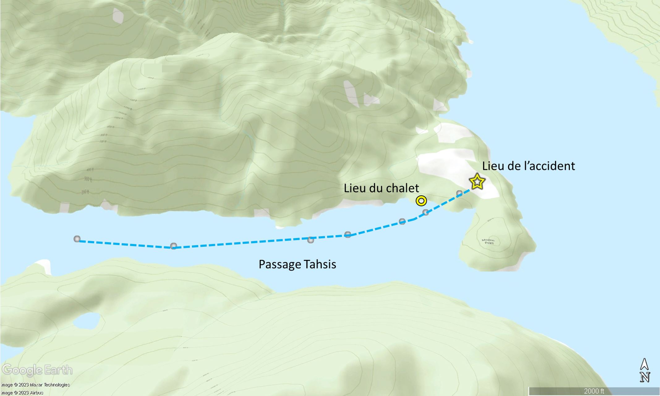 L’aéronef a suivi le passage Tahsis en direction de sa destination et a continué sa route en vue d’un amerrissage direct, près du chalet (figure 1).