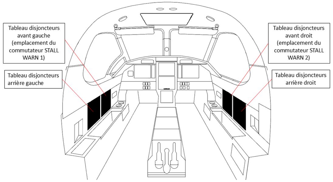 En plus de ces aspects de la procédure relative à l’activation par inadvertance du vibreur qui ont pu contribuer à la confusion du pilote dans l’événement à l’étude, l’enquête a révélé une autre étape de la procédure susceptible de nuire à la capacité d’un pilote à prendre les mesures qui s’imposent. Pour être précis, l’une des étapes exige que le pilote tire sur le disjoncteur STALL WARN 2, qui est situé du côté droit du poste de pilotage.