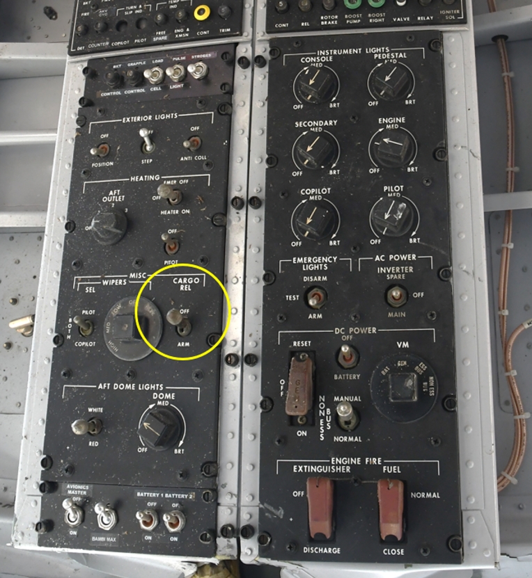 De plus, bien qu’un voyant annonciateur CARGO RELEASE ARMED de couleur ambre soit allumé en bas à droite du tableau de bord avant, il se peut qu’un pilote tente d’utiliser le commutateur électrique avant de se rappeler que le commutateur CARGO REL n’est pas à la position ARM. Cela peut retarder le largage de la charge.