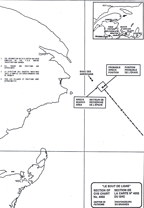 Pendant le trajet entre Cap-aux-Meules aux Îles-de-la-Madeleine et Rivière-au-Renard (Québec) par gros temps, le 13 décembre 1990, le «LE BOUT DE LIGNE» est disparu avec tous ses occupants. La dernière position connue du bateau se trouve à environ 20 milles au sud-est du cap de Gaspé. En dépit d'une opération de recherches et sauvetage intensive, on n'a trouvé trace ni du bateau ni des trois membres de l'équipage.