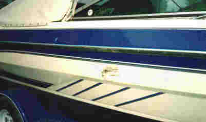 Il y avait une éraflure d'une longueur d'un mètre sur la défense en caoutchouc au droit du livet de pont tribord de la «6E7221». Juste en contrebas de cette éraflure, il y avait, sur la coque en fibre de verre peinte en blanc, une perforation de 125 sur 125 mm au centre de rayures noires sur une surface de 170 sur 170 mm. Un échantillon de la peinture noire provenant de ces rayures et un échantillon de peinture provenant de l'avant du «AMÉLIA DESGAGNÉS» ont été examinés au Laboratoire technique du BST. On a estimé que la similarité des deux échantillons analysés «confirmerait le contact du «AMÉLIA DESGAGNÉS» contre l'embarcation plus petite et correspondrait à un abordage entre les deux bâtiments.»
