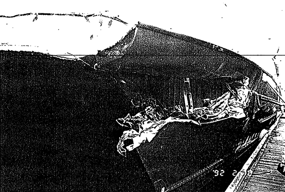 Le «ROYAL VANCOUVER» a subi de lourdes avaries au flotteur en aluminium de bâbord et certains dommages au gaillard d'avant et au flotteur de tribord. Les avaries étaient limitées à l'avant de la cloison d'abordage.