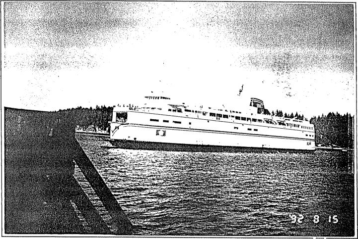 Le 13 août 1992, le «QUEEN OF NEW WESTMINSTER» était accosté au quai no 3 de Departure Bay (Colombie-Britannique). Pendant les dernières étapes de l'embarquement des véhicules sur le pont supérieur du «QUEEN OF NEW WESTMINSTER», on a demandé à une fourgonnette avec six personnes à bord de s'arrêter. Alors que le véhicule était immobilisé sur le tablier de la rampe d'embarquement du terminal, le traversier a commencé à s'éloigner du quai. Le tablier, n'étant plus supporté par le pont du navire, s'est brusquement abaissé et la fourgonnette est tombée sur le pont inférieur puis à l'eau. Trois des occupants du véhicule sont morts et trois ont été repêchés, dont un grièvement blessé.