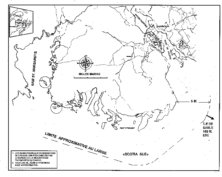Le matin du 18 mai 1993, le «SCOTIA SUE» a été découvert enfoncé jusqu'au pavois à son poste à quai du port de Halifax. On s'est plus tard aperçu que l'alimentation en électricité de la pompe de cale du bateau avait été coupée sur le quai. Le navire n'était pas en service et il n'y avait personne à bord.
