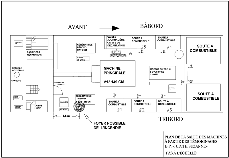 Rien dans les règlements n'exige qu'un navire comme le «JUDITH SUZANNE» ait à bord un appareil respiratoire ou soit équipé d'une génératrice de secours située à l'extérieur de la salle des machines.