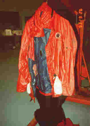 La victime portait une veste de flottaison de couleur orange munie d'une bande de fourche. La veste était un vêtement de flottaison individuel (VFI) de type I approuvé par la GCC et conforme à la norme 65-GP-11 de l'Office des normes générales du Canada (ONGC). La veste était du type qui permet à celui qui la porte de flotter sans se retourner et se retrouver le visage dans l'eau. La veste était aussi conçue pour offrir une certaine protection contre l'hypothermie. On s'en servait depuis un certain temps comme veste de travail mais elle était en bon état. La victime ne nageait pas très bien et a apparemment succombé au froid peu après être entrée dans l'eau.