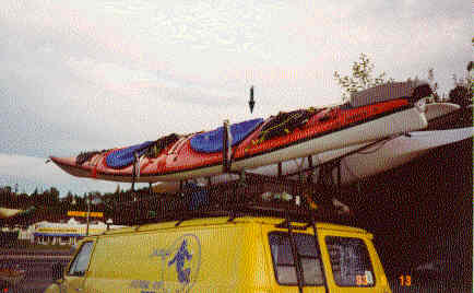 Les tout premiers jours, certains membres du groupe ont changé de kayak jusqu'à ce qu'ils trouvent celui qui leur convenait le mieux. Un des hommes s'est servi d'un kayak monoplace en fibre de verre (type A) pendant tout le voyage parce que c'était celui qui lui convenait le mieux à cause de sa taille.
