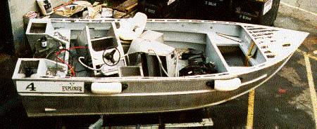 Le «CHARLOTTE EXPLORER 4» (CE4) est un bateau non ponté en aluminium comportant deux pupitres placés au milieu; il est propulsé par un moteur hors-bord dont les commandes se trouvent sur le pupitre de tribord, tout comme la roue de gouverne. La coque en V, à faible tirant d'eau et à bouchain simple, comporte un double-fond étanche de même que des caisses de flottabilité à l'avant et à l'arrière (voir la photo 1 de l'annexe E). Il y a à l'avant un caisson muni d'une porte où sont arrimés les gilets de sauvetage. Derrière ce caisson, on retrouve un bac pour recevoir les prises, qui a ses propres orifices d'assèchement. Le cockpit est aussi autopurgeur grâce à la présence de nables à l'arrière, dans les hanches bâbord et tribord.
