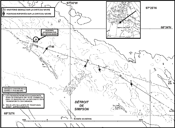 La carte marine utilisée à bord était la carte no 7735 du SHC, soit celle du détroit de Simpson.
