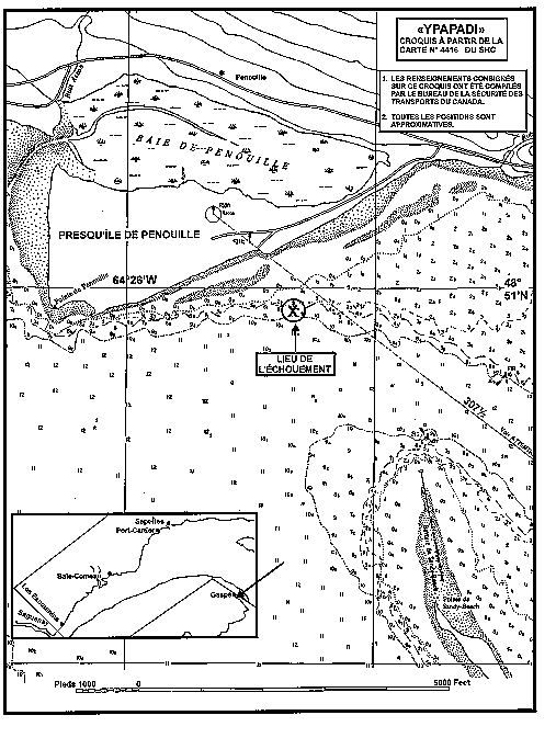 Le «YPAPADI» est arrivé à l'entrée du port de Gaspé (Québec) dans l'après-midi du 6 décembre 1996. Bien que le pilotage soit facultatif dans ce port, les propriétaires avaient demandé aux agents de Montréal (Québec) de fournir un pilote au navire pour entrer dans le port. Le sous-agent à Gaspé n'a pas réussi à retenir les services d'une personne possédant de l'expérience dans le domaine du pilotage, et un des représentants du sous-agent est monté à bord du «YPAPADI» pour guider le capitaine vers le poste d'accostage. À cause d'un manque de communication entre cette personne et le capitaine, chacun croyait que c'était l'autre qui avait la conduite du navire. En approchant du poste d'accostage, à une position où il faut procéder à un changement de route important, ni l'un ni l'autre n'a donné l'ordre approprié au timonier, et le bâtiment s'est échoué du côté nord du port. Le «YPAPADI» a été renfloué une semaine plus tard. Le navire n'a pas subi d'avaries et il n'y a pas eu de pollution.