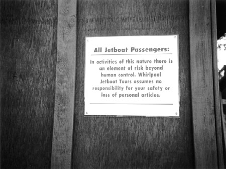 Avant d'embarquer sur le Saute Moutons 6, chaque passager doit remplir et signer un formulaire d'abandon de recours appelé « entente de participation » (participation agreementSaute Moutons 6). La société souligne que les personnes souffrant de problèmes de dos, de cou ou d'autres malaises courent un plus grand risque et le conducteur encourage ces personnes à informer le personnel de leur état de santé. Le conducteur du bateau peut refuser de prendre une personne à bord pour faire l'excursion.